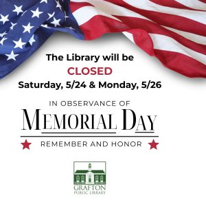 For a complete calendar of 2023 Library closings, please visit https://graftonlibrary.org/2023-closings/